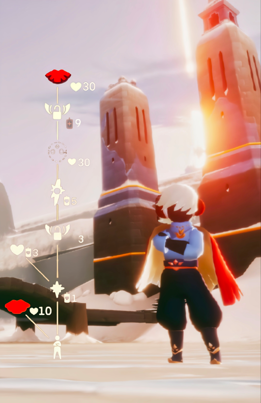 2.玩家可以花费30个爱心,兑换黑脸面具,还可以兑换一个深橘色的斗篷。全部解锁需要19个蜡烛,1个升华蜡烛,30个爱心;