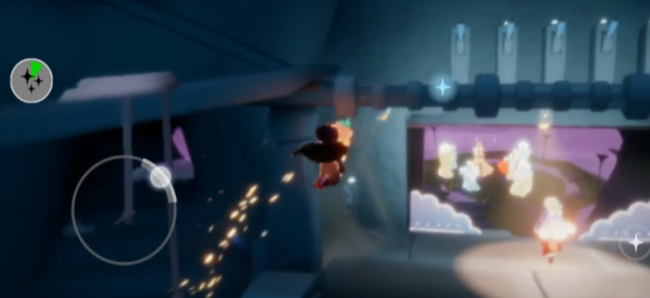 6、等先祖把门打开之后,玩家要飞到门的上方进行交互,然后演出会正式开始;