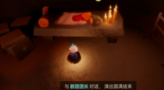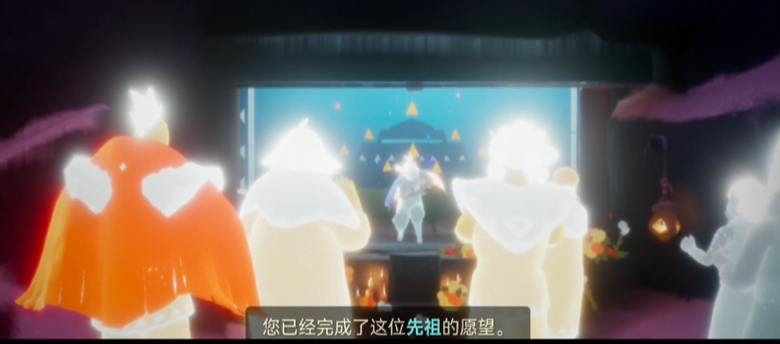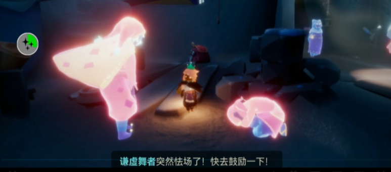 7、玩家要飞到舞台上和先祖一起表演,然后镜头切换到后台,玩家和先祖交谈发现舞者先祖怯场不能表演;