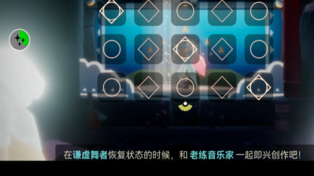 8、玩家要做的就是在舞者恢复信心的时候,和另一个先祖在台上弹琴;