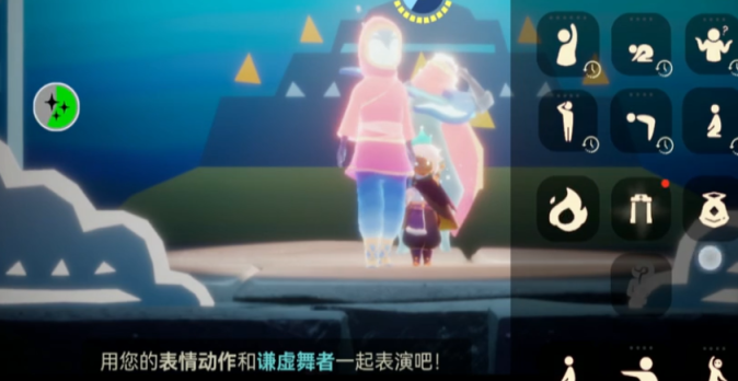 9、等舞者先祖上台之后,玩家还需要配合舞者先祖表演,玩家可以随意选择表情;