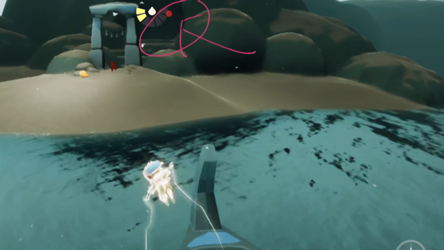4.跑到石头顶端,找到图中标识的船。