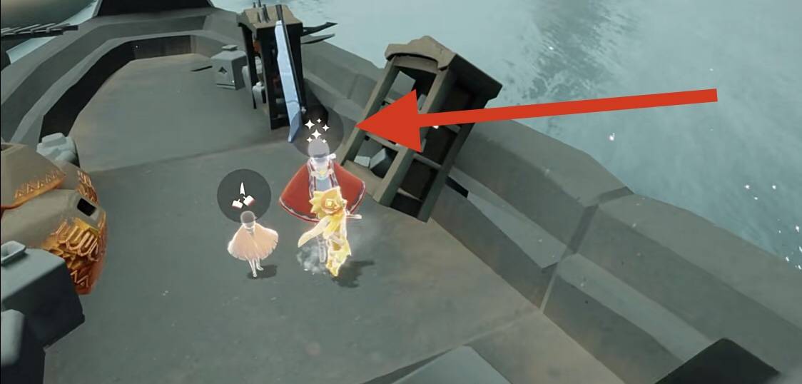 1.首先打开光遇,进入藏宝岛礁地图中,在小船上找到向导先祖先领取藏宝岛礁任务;