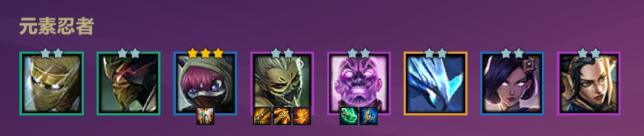 1.4、7级阵容:4忍者3元素使3潜行者2北地。