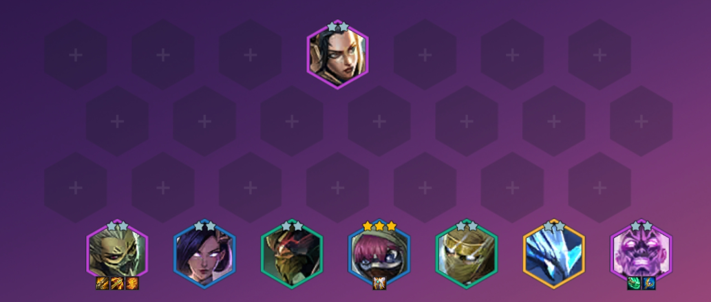 1.1、4-1升7级,根据对手阵容强行找一张潜龙刺,组成4忍者3潜行者。