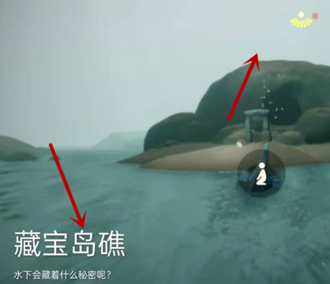 1、打开光遇手游,进入藏宝岛礁地图,在地图初始位置飞到如图山顶。
