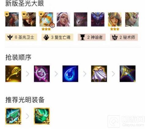2、黎明之战:我建议圣光大眼阵容,主c大眼副C是光辉,英雄:稻草人,辛德拉,大眼,铁骑士,艾翁,天使,光辉,狗熊,大眼带光科技枪或者光青龙刀,上分神器
