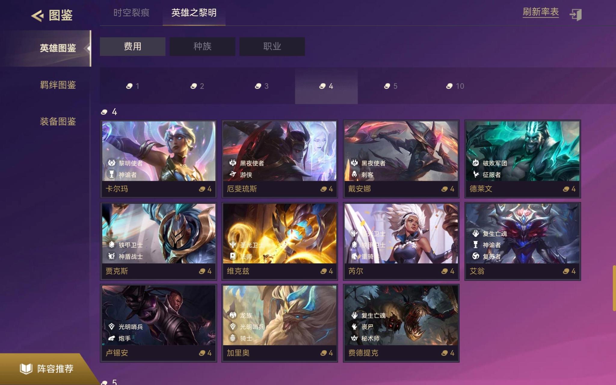 1、金铲铲之战中4费卡共有22个张每个模式各11张。