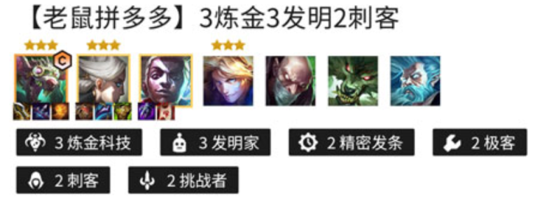 2、羁绊:3炼金科技、3发明家、2精密发条、2极客、2刺客、2挑战者
