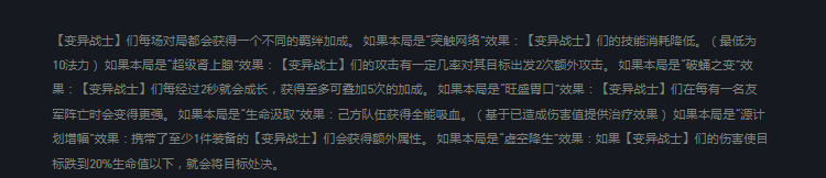 1、金铲铲之战中变异战士的多个羁绊效果中,如果用大嘴来做主C的话。最强的效果是“超级肾上腺”。该羁绊的两次额外攻击加上枪手羁绊的攻击力加成和额外攻击次数可以帮助大嘴快速叠其羊刀,输出效果爆炸。