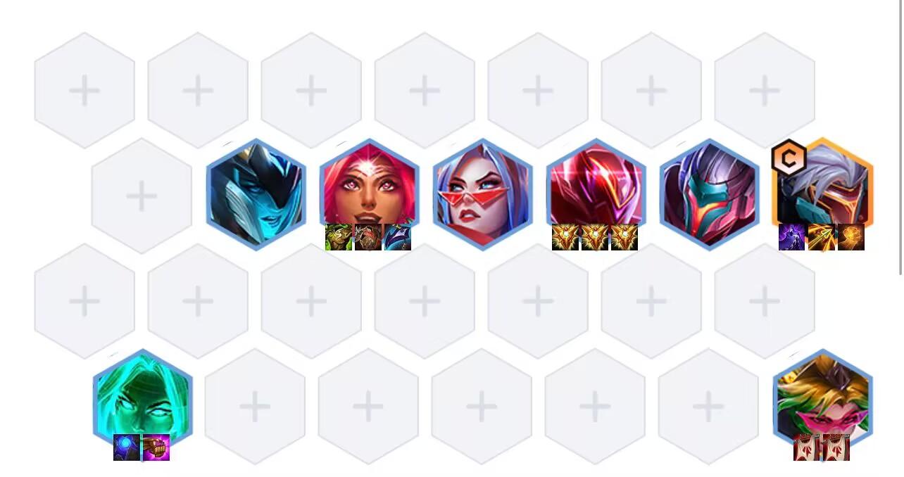 8、后期阵容:瑟庄妮、尼菈、菲奥娜、普朗克、亚索、劫在第二排抗伤,乐芙兰、薇恩在最后一排输出。