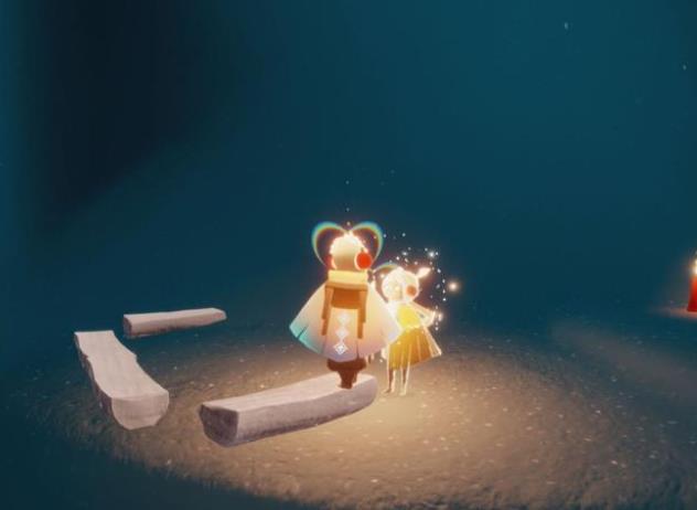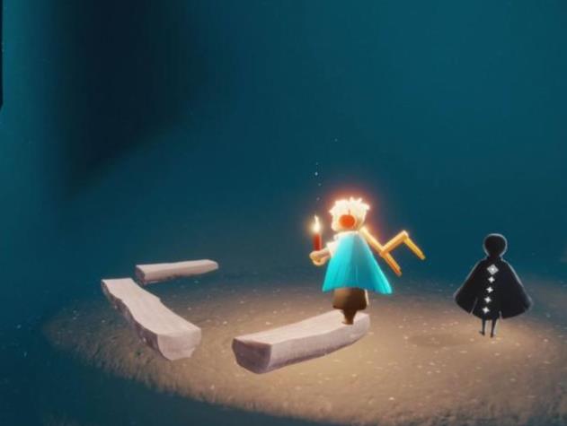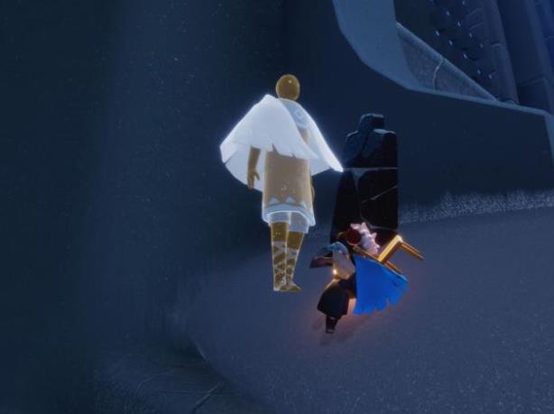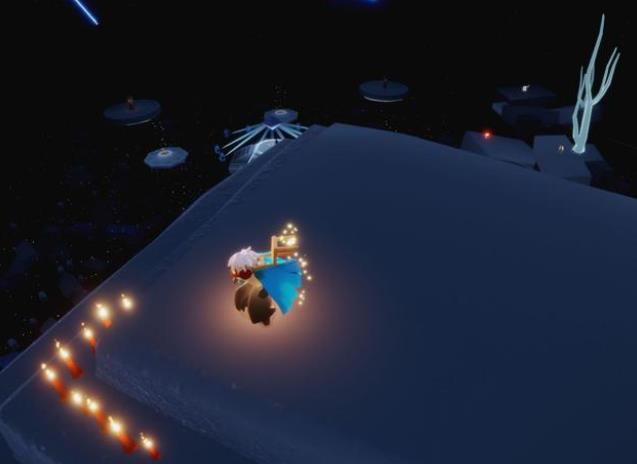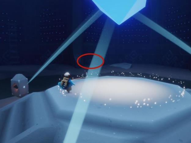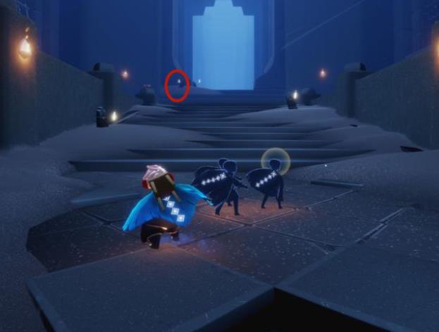 ②一楼四人门内部有一个大蜡烛。很多人喜欢用矮人面具,在指定地方,连续垂直飞,挤到建筑模型里面拿。 这种方法比较慢,还容易被卡住。 最流畅的方法,是进门后,直奔小红圈所标记的先祖这里。