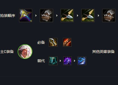 刺客凯隐必备无尽,其次可选择火炮增快普攻输出频率,3怒翼(自带吸血) 火炮有105%攻速,作为一个刺客,凯隐攻击也会有伤害。最后一件装备可以选择水银。但记住,只有无尽是必备,像夜之锋刃、火炮、水银、杀人剑,这些东西都是可以互相代替的。最终有2件输出装 1件防装,或者3件输出装就可以。