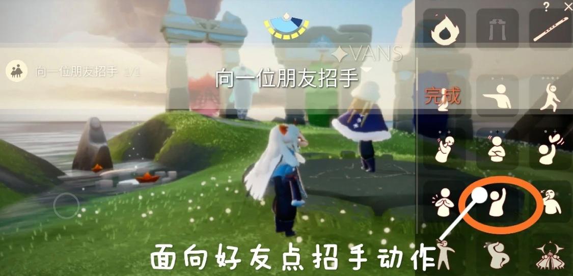 光遇游戏中,招手任务就是面对面的对好友发出招手动作即可。招手任务通过详情如下: