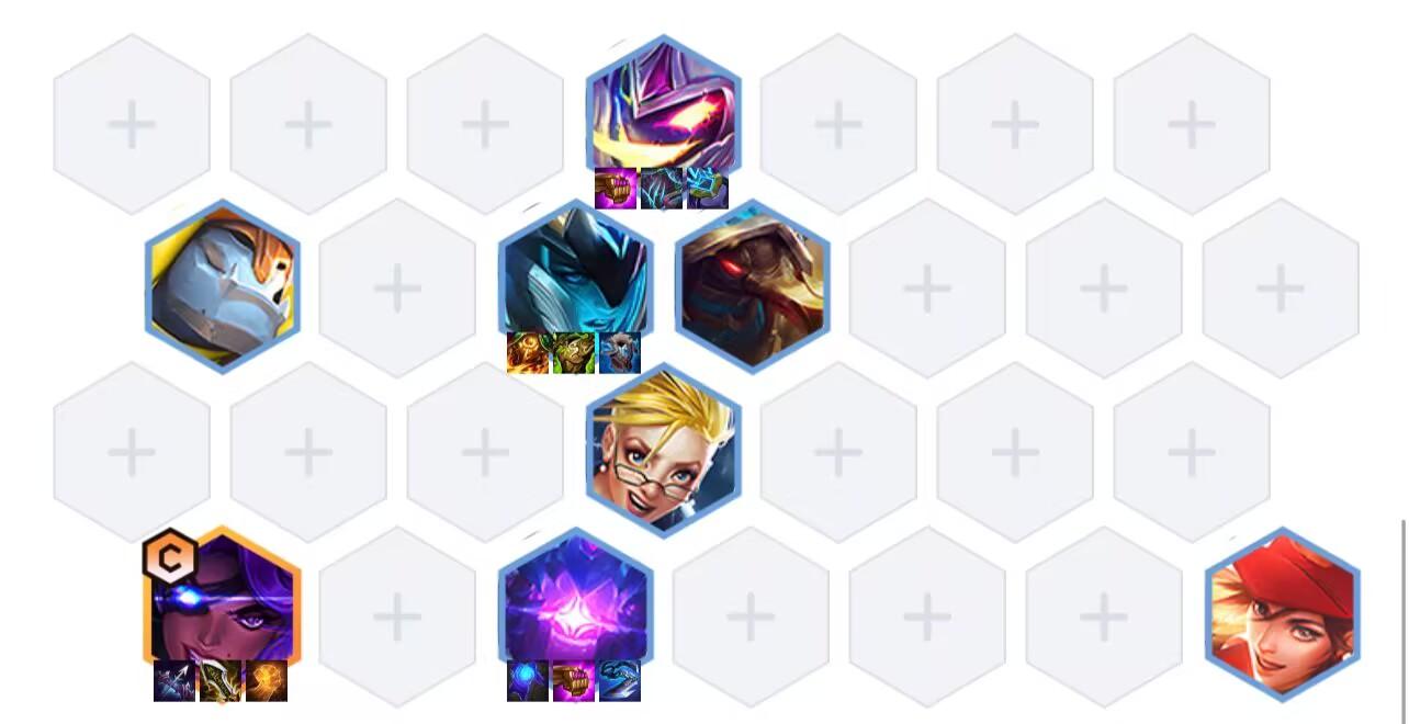 8、后期阵容:维克兹在第一排抗伤,加里奥、瑟庄妮、拉莫斯在第二排抗伤,迦娜在第三排输出,莎弥拉、维克兹、希维尔在最后一排输出。
