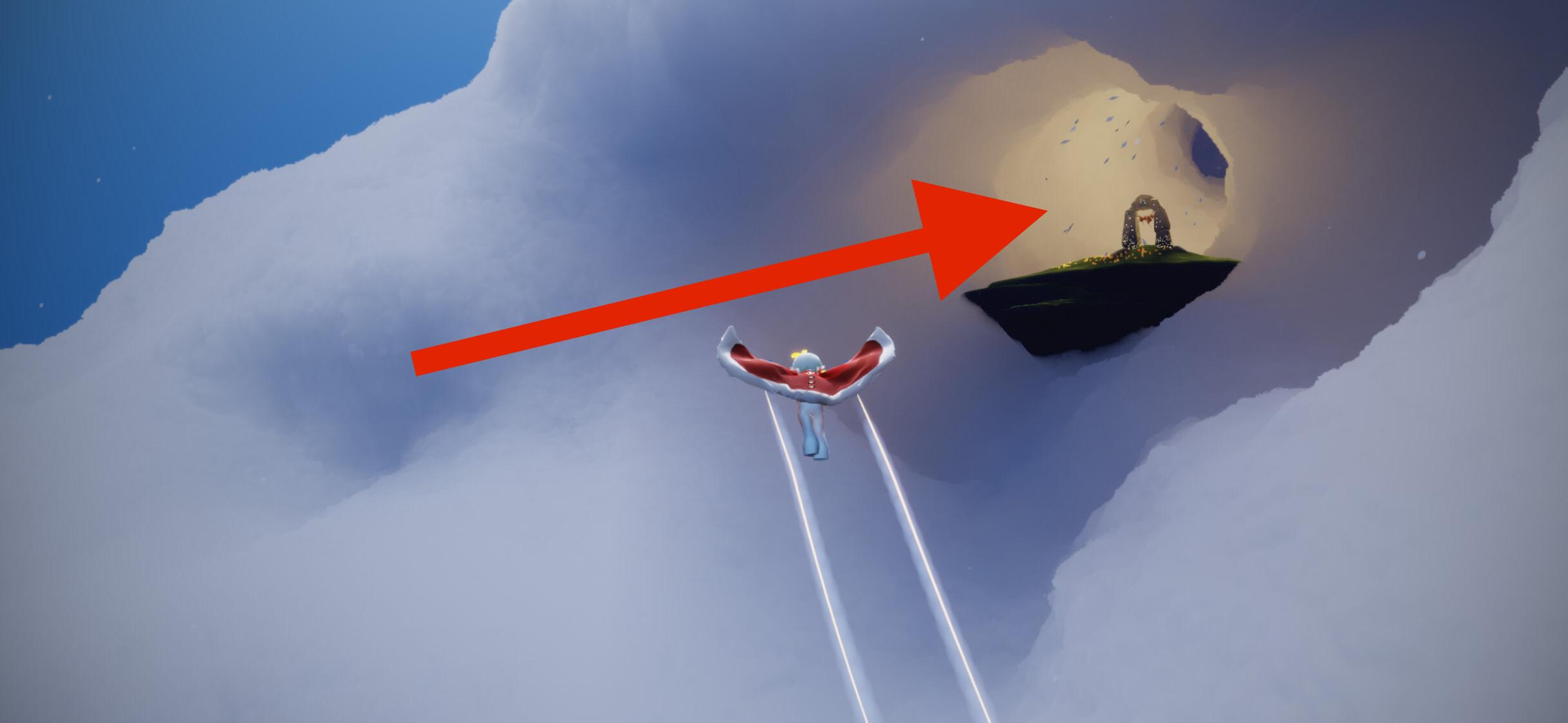 2、进入雨林地图后,飞上右上方的云洞中,进入风行季地图。