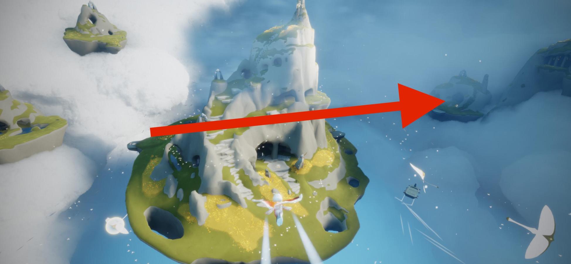 3、进入风行季地图后,飞到最右侧的岛屿上。