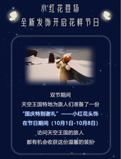 2、小红花头饰是光遇官方在国庆期间推出的全新装扮,喜欢的小伙伴快去参与吧。