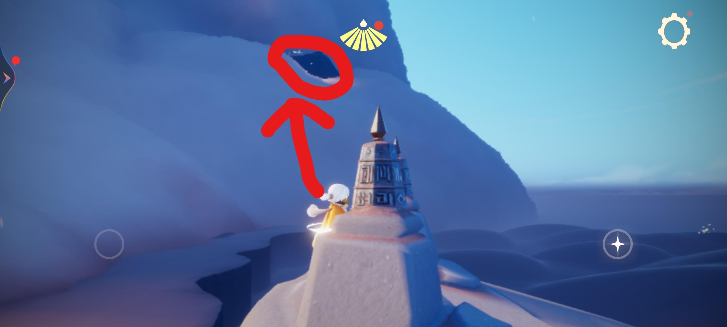 1、进入晨岛,一直往前飞看到一个云洞,如下图一个空洞,向这里飞。