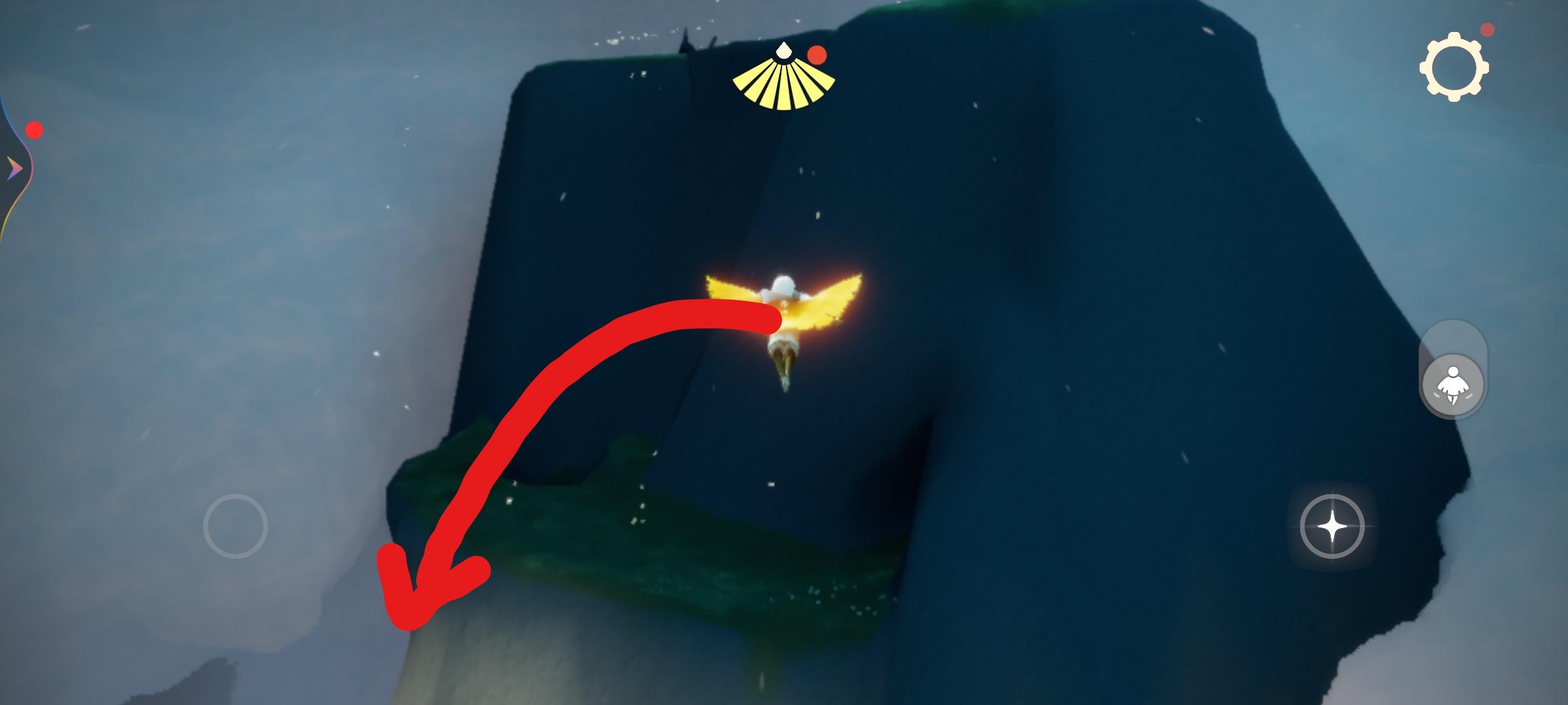 2、到了之后可以看见一个黑色大山洞,往箭头方向飞;