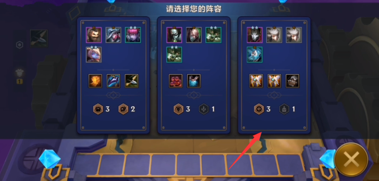 3.第三关选三星萨米拉的阵容,海克斯强化选源计划植入,增加以携带装备英雄的血量和攻击力,把永霜给巨魔装备上,用妮蔻之助合成二星卡密尔,刺客之徽给剑姬,挑战者之徽给烬,肉的站前面,烬放在最后面输出,就能通关了。