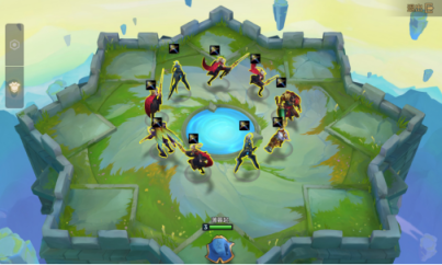 在进入游戏后,参与本局比赛的八名玩家的小小英雄会共同传送到选秀区域,在选秀区域抢到心仪的装备或棋子后(在每个阶段的第三个小回合都会有选秀环节)八名玩家会各自传送到各自的棋盘上。