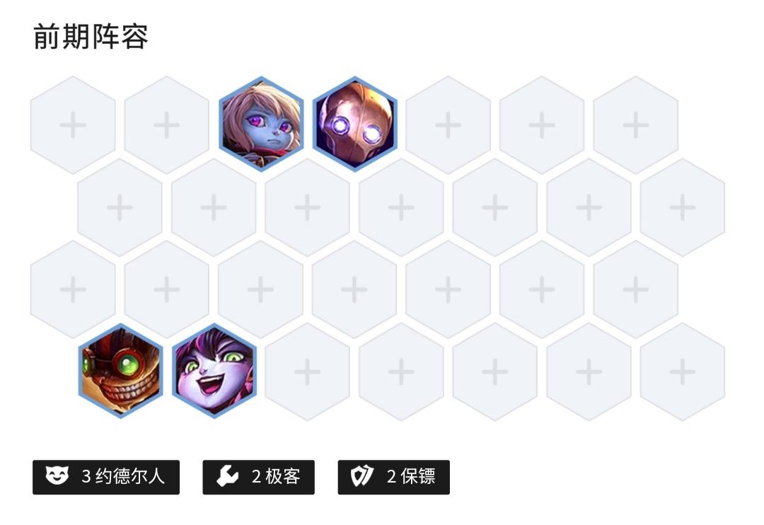 6.该阵容前期可以用3约德尔人,2保镖,2极客过渡。