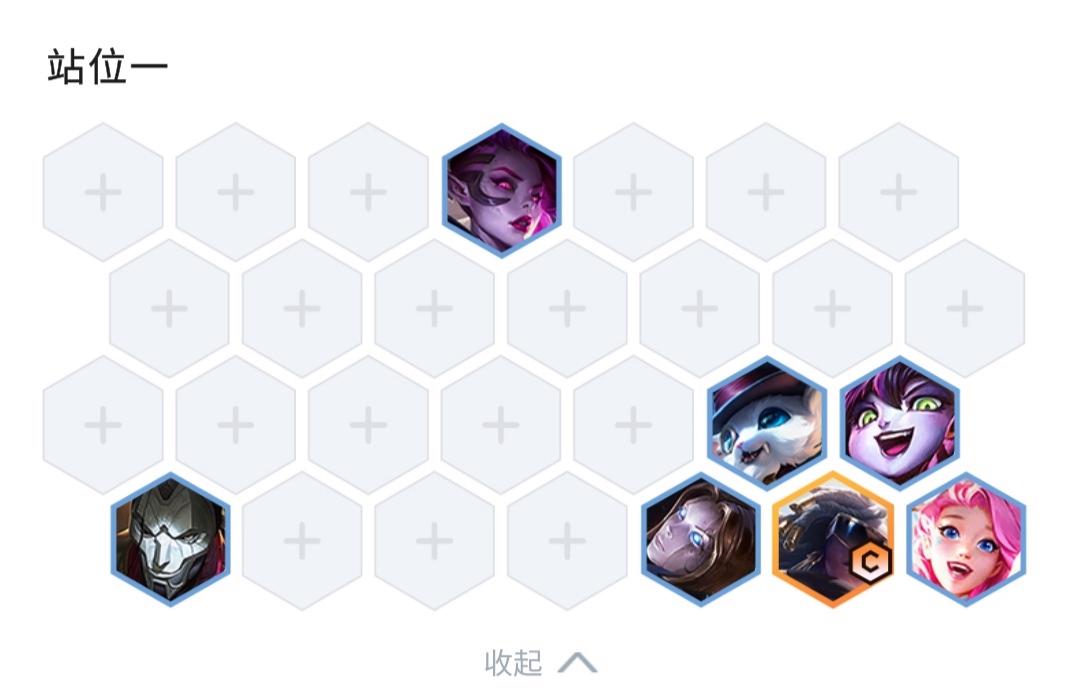 8.后期阵容成型后,由莫甘娜站前排抗伤害,烬和萨勒芬妮站角落防钩,其余人将C位包围,防止刺客。