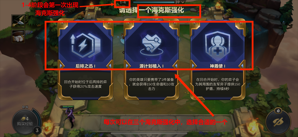 1.游戏开始后的1-4阶段,会第一次出现海克斯强化。
