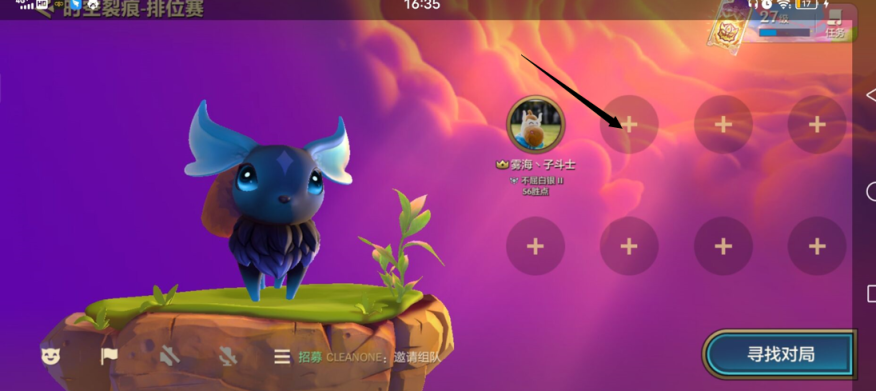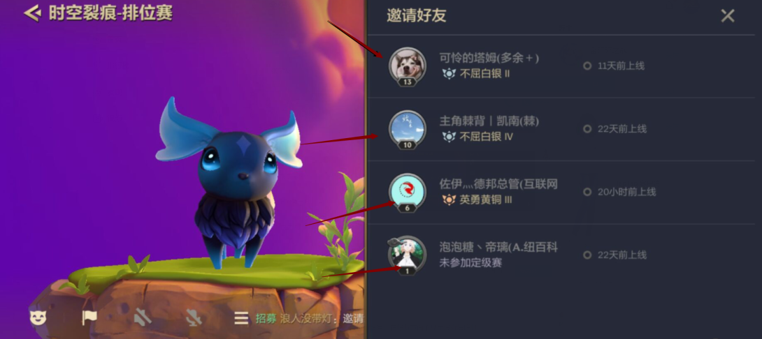 1、打开游戏进行游戏中寻找对局中点击箭头标记的位置经行好友邀请