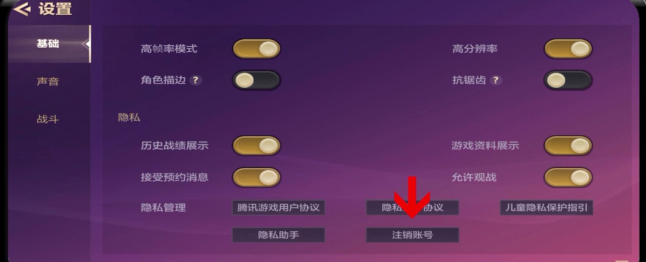 在设置界面左边点击基础,滑动基础界面至最下面,点击注销账号,点击确定。