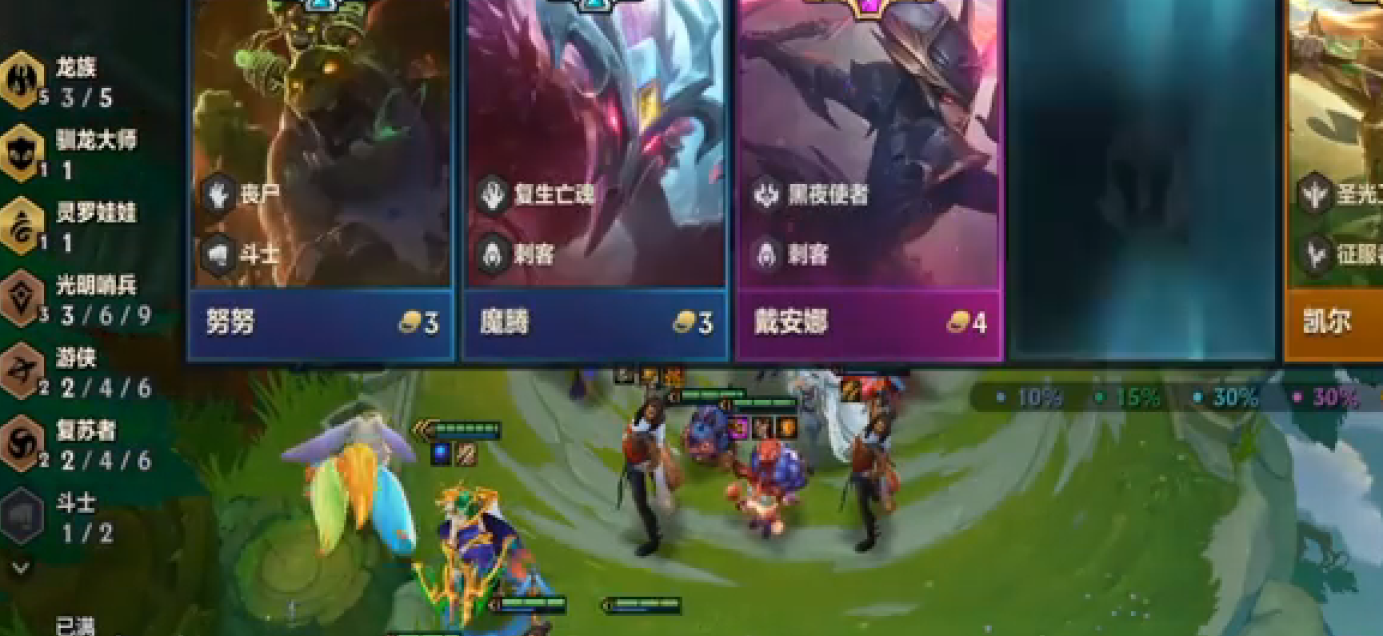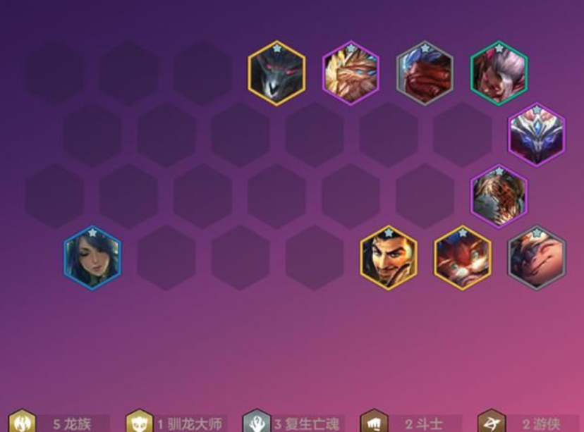 二、阵容羁绊:5龙族&1永猎双子&1大魔王&1驯龙大师&2复生亡魂&2游侠&2斗士&2复苏者&2神谕者。