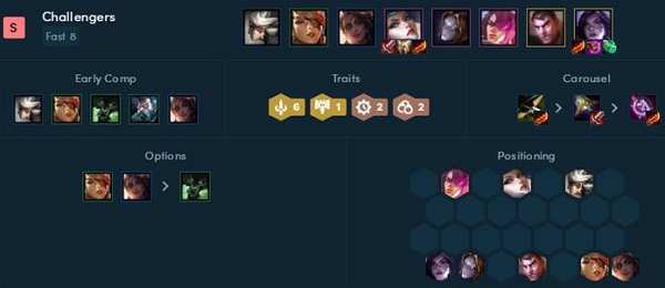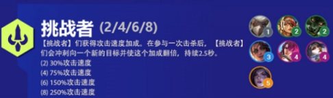 在金铲铲之战S6赛季中,挑战者的阵容羁绊效果是可以获得攻击速度加成,而且在击杀敌人之后攻击速度会更快,今天为大家介绍一下挑战者阵容玩法。