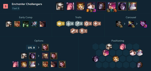 4.主要的输出手段就是让剑姬和永恩这两个挑战者快速收割,同时还有2发条加成下攻速更快,另外3个白魔法师羁绊提供的回复能力让挑战者们的生存状况更好,不容易被秒杀。