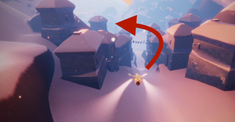 3、在溜冰场旁边可以看到向导,在向导左边房子的旁边,就可以看到旋转先祖了;