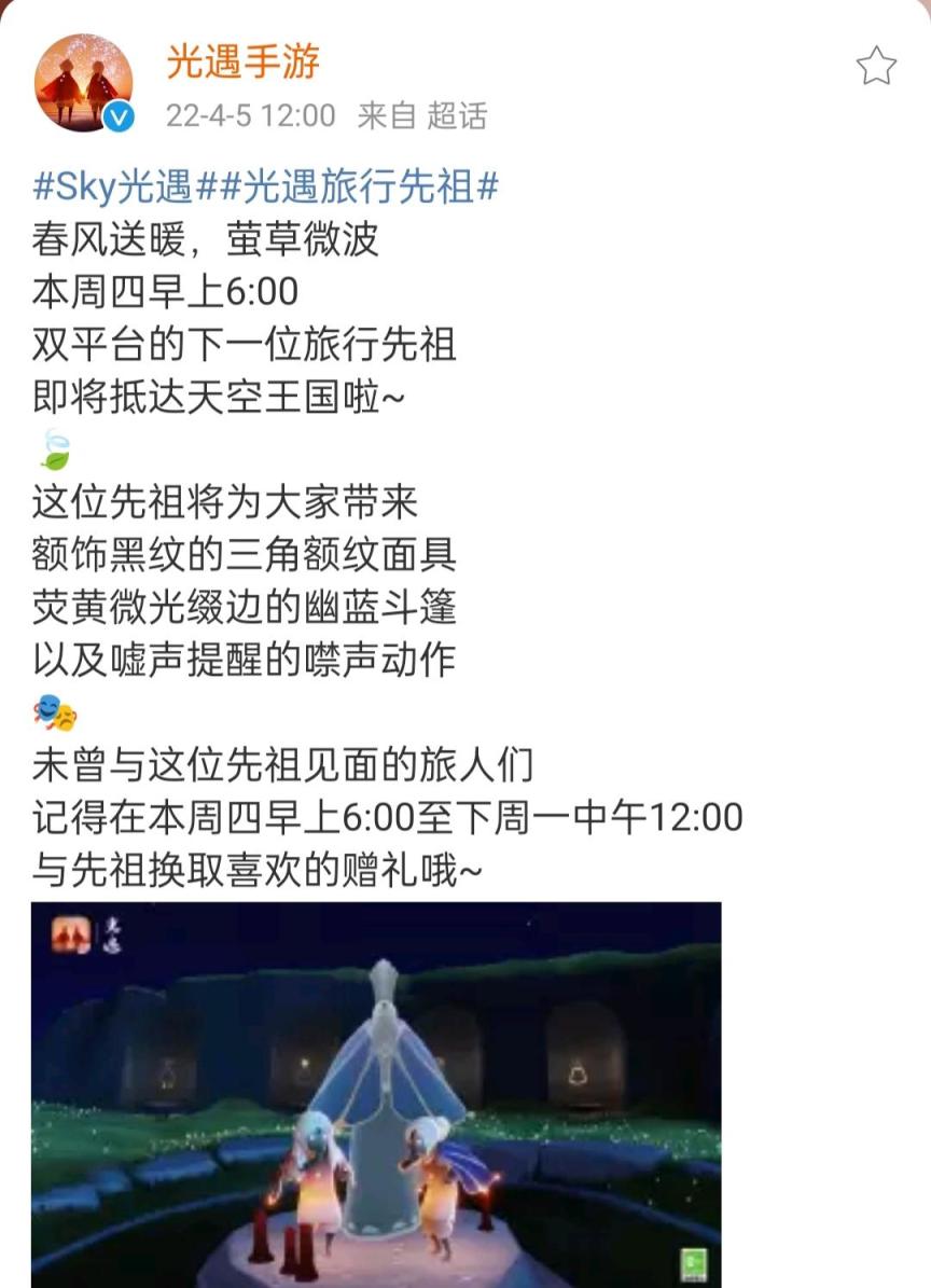 光遇复刻4月7日是于两天前的中午时段公布的,也就是4月5日的中午12点!