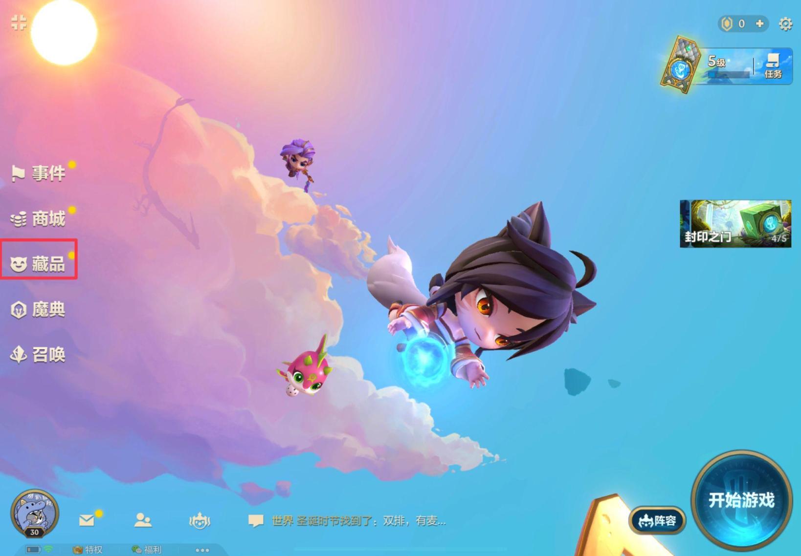1、金铲铲之战s7赛季中,点击左侧的藏品。