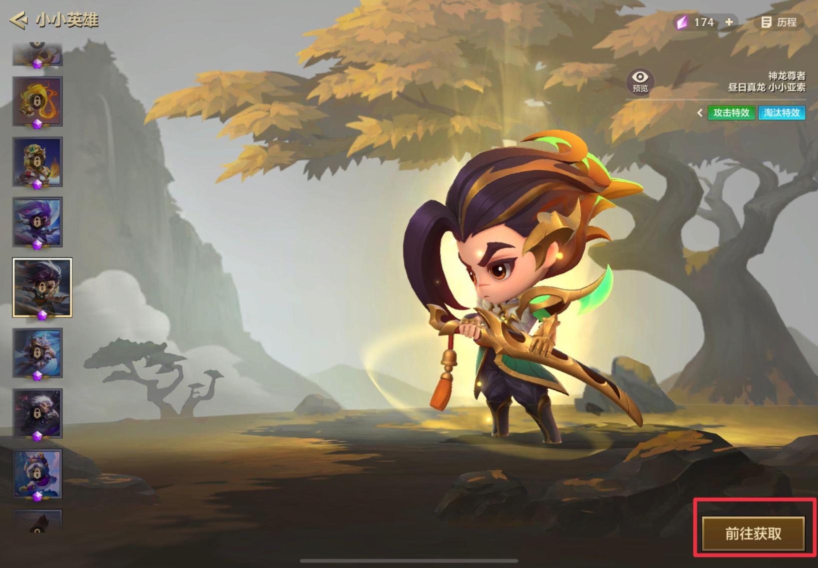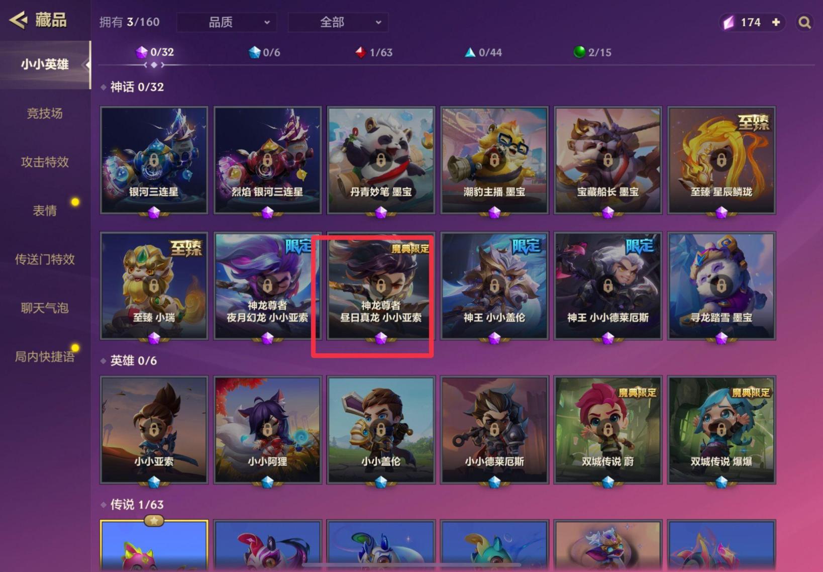 2、在藏品中,点击小小英雄,找到神龙尊者 昼日真龙 小小亚索点击。