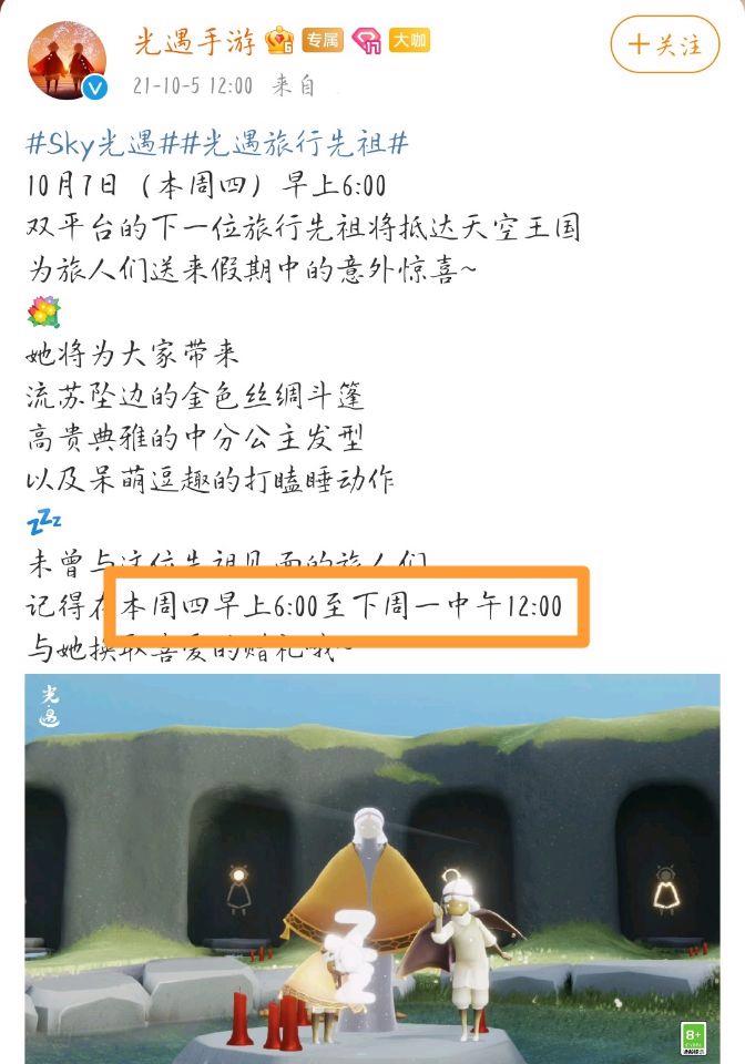 光遇中的公主头发型已经复刻过了,时间是从2021年10月7日早上6:00开始到10月11日中午12:00结束,在先祖返场复刻的时间内,玩家可以来到魔法季地图失落方舟中,解锁先祖进行复刻。