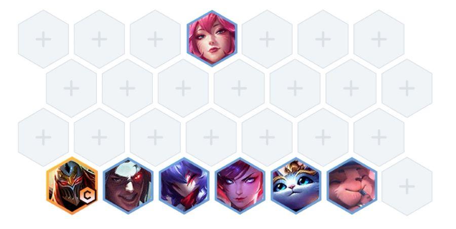 3、阵容的站位为:狐狸放在第一排,快速放技能为友军加攻击速度;其他的人全部放在最后一排,但是劫最好放在底角,防止跳到人堆里边被集火秒杀,千珏和凯隐放在劫的旁边,其他的英雄可以根据对手的阵容灵活站位。