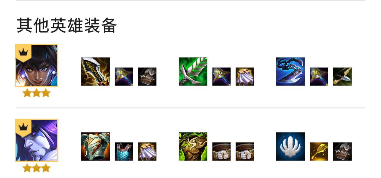 4、其他英雄装备:尼菈的装备是无尽、汲取剑、巨杀,塞拉斯的装备是石像鬼石板甲、狂徒、碧波龙纹章,如下图所示。