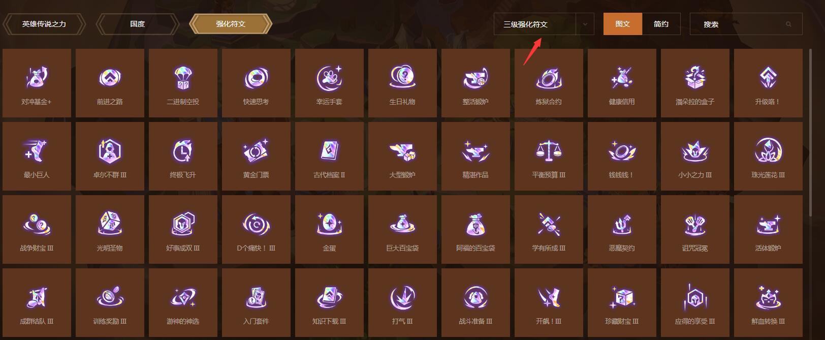 如果是强化符文方面的话,棱彩阶就是三级强化符文,如下图所示三级强化符文是显示棱彩颜色的,所以就被称之为棱彩阶强化符文。