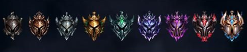 1.黑铁、黄铜、白银、黄金、铂金、钻石、超凡大师、傲视宗师、最强王者。