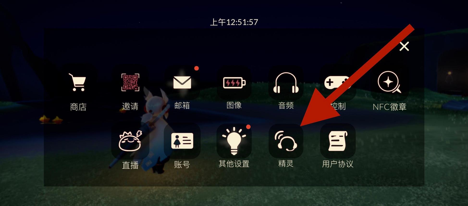 1、首先进入游戏打开右上角的设置图标,然后在出现的界面中点击精灵。