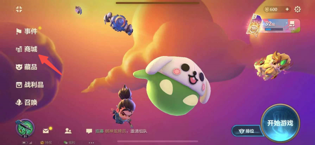 第一步,先打开金铲铲之战游戏,然后点击界面左边的商城,进入到游戏商城界面。