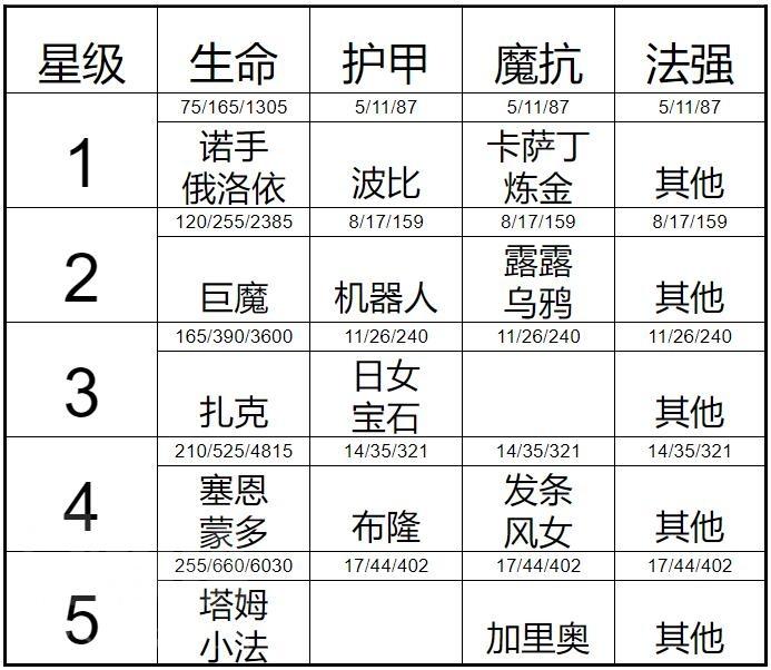 2、他吞噬己方奕子后在增加属性的多少取决于该奕子的质量以及费用,也就是说塔姆吞噬五费三星卡的收益是最高的,吞噬一费一星卡收益是最低的。具体属性增加可以查看下图了解。
