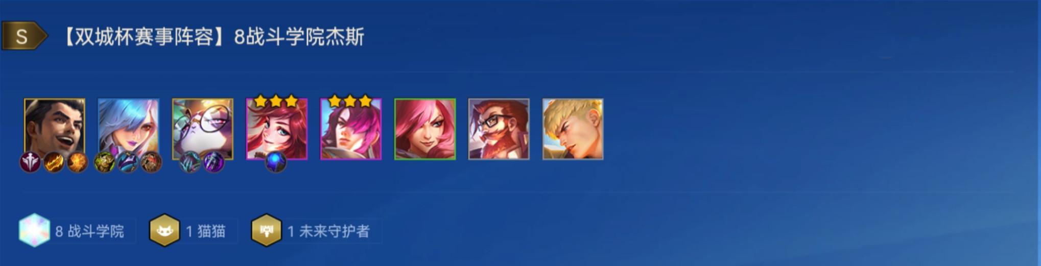 (1)组成阵容奕子有:杰斯、日女、猫咪、拉克丝、永恩、卡特、男枪和盖伦。组成阵容羁绊有:8战斗学院、1猫猫、1未来守护者。