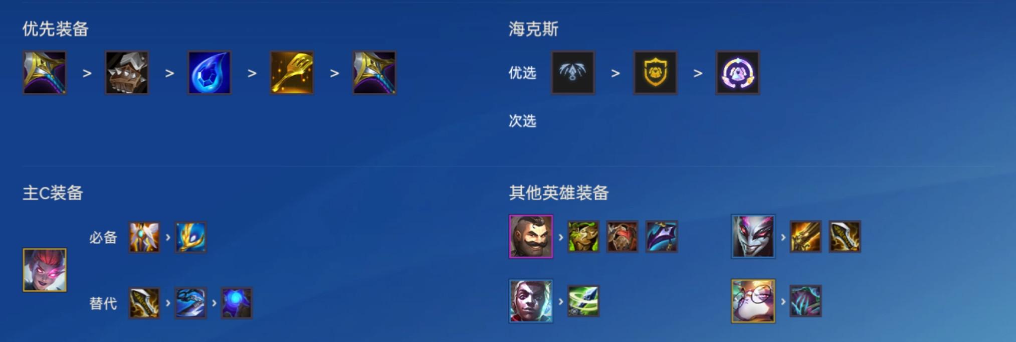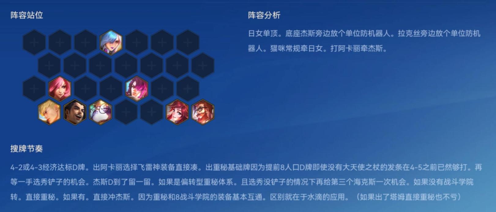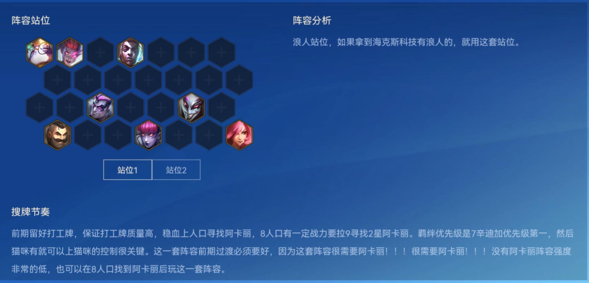 (4)阵容站位:如下图站位即可。注意如果没有拿到浪人海克斯的话,就采用密级站位。