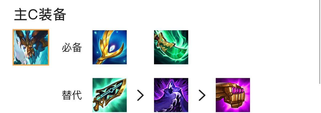 3、主C敖兴的必备装备是大天使、朔极之矛,替代装备是科技枪、夜之锋刃、法爆。