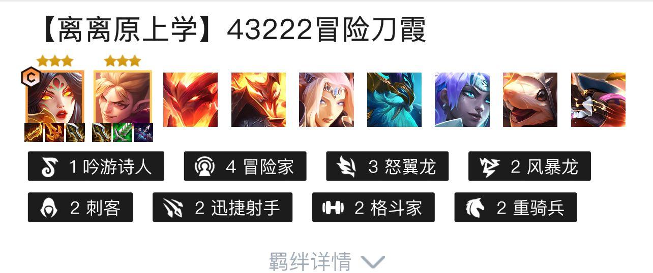 1、在金铲铲之战S7赛季中,冒险家阵容推荐玩离离原上学,是由1吟游诗人、4冒险家、3怒翼龙、、2风暴龙、2风暴龙、2刺客、2迅捷射手、2格斗家、2重骑兵组成。